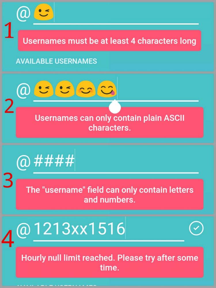 Can't you just display the valid pattern for an username instead of showing different error message everytime.