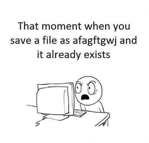 So fucking true! Worst is that you press shift in the middle of a keyboard rampage/stroke out and even that filename exists 😂😂😂