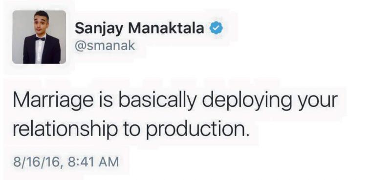 Marriage is basically deploying your relationship to production.