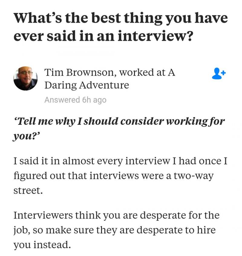 But mostly, where you shocked the interviewer with your brain and wit. -