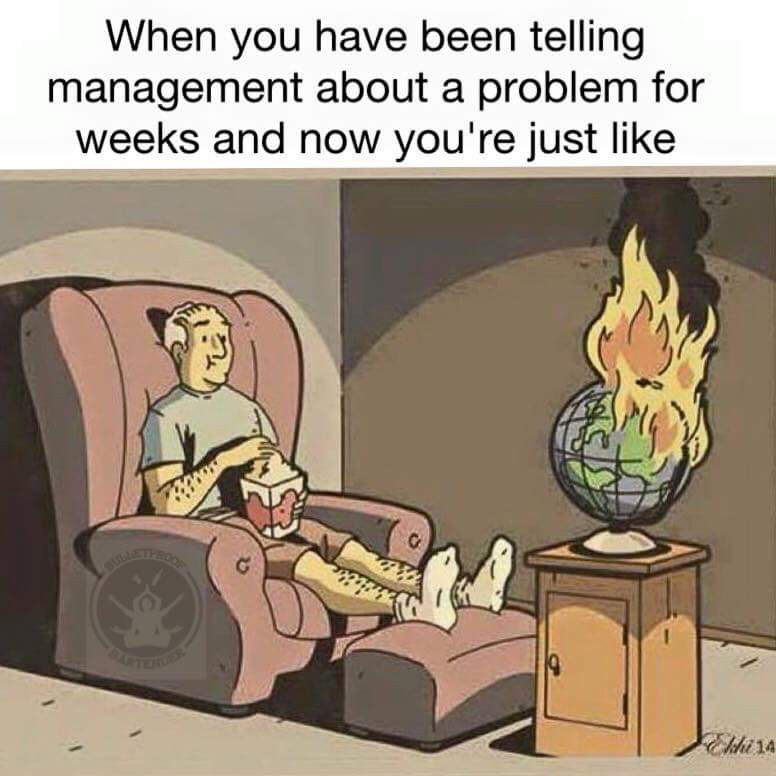 Manager: Hm, this was not in the schedule. I need to consult senior leadership on what to do about this. I don’t want to be held accountable for making a decision on this complex and highly nuanced situation.