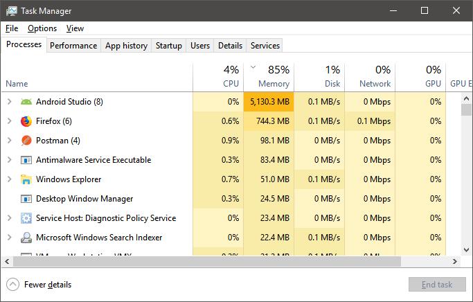 FOR FUCK SAKE ANDROID STUDIO!!! 5GB RAM WHAT THE FUCK ARE YOU DOING!!! I NEED THOSE VMs RUNNING AND USING 5GB IS NOT COOL AT ALL!!