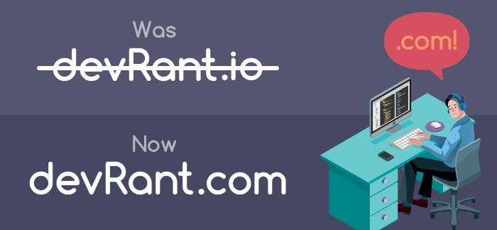 Today we have an exciting devRant announcement! As many observant members of the community have problably noticed, since launch we've been using the domain name devrant.io since the .com was already taken. Today, we're happy to announce, we now own devrant.com and it is now the official devRant URL!