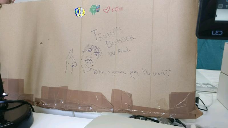 Every time my mac mini compiles and gives off too much warm air my workmate splits always our table with a cardboard. So i decide to decorate it a little bit...