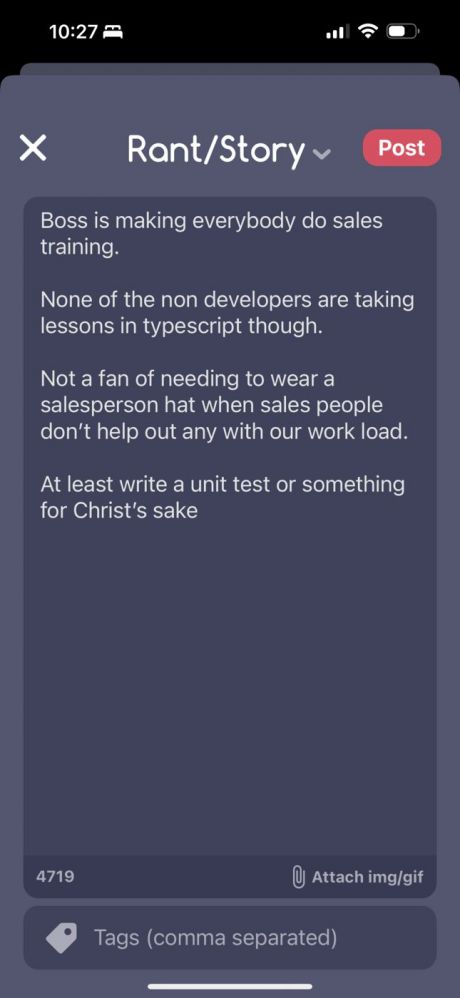 i'm back to developer job... just left a cibersecurity job. I've just did because I want to post rants here.