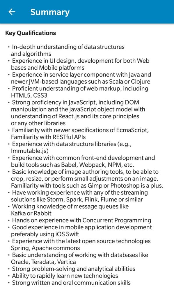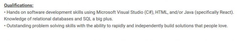 C, C++, C#, Java, VB, PHP, HTML, Javascript, MySql, Postgree, windows, Linux, Mac OS, a degree in computer science and a few years of experience.